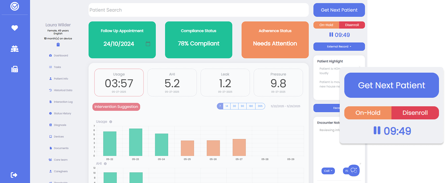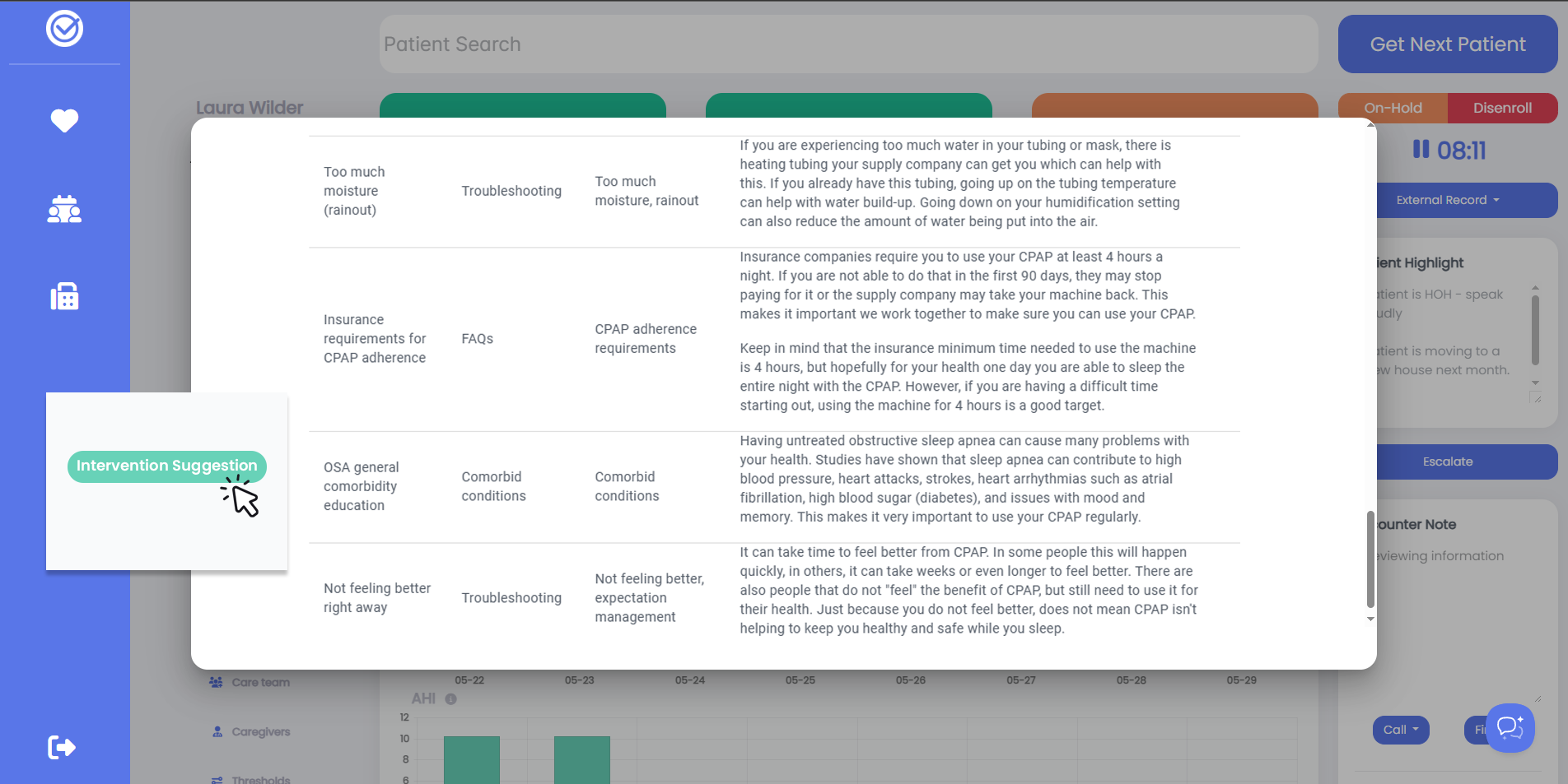 Intervention Engine allows non-clinical staff to quickly resolve many of the most common problems sleep patients face, reducing escalations to your clinical staff