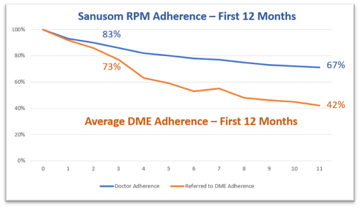 Studies show less than 50% of patients setup on PAP will be using therapy in 12 months